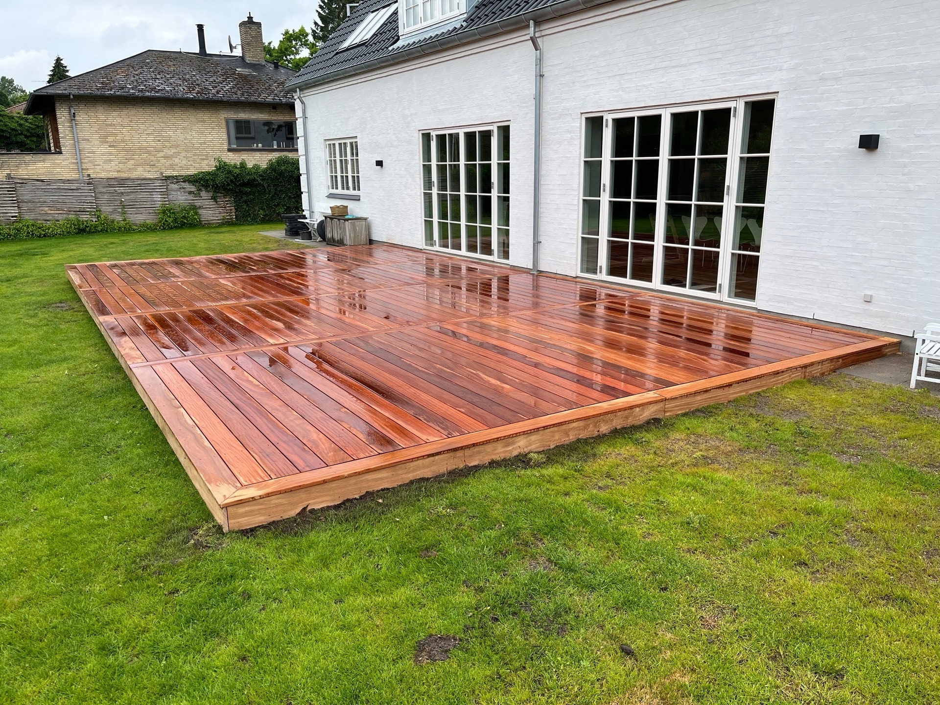 Færdig terrasse lavet af tømrer i Dragør